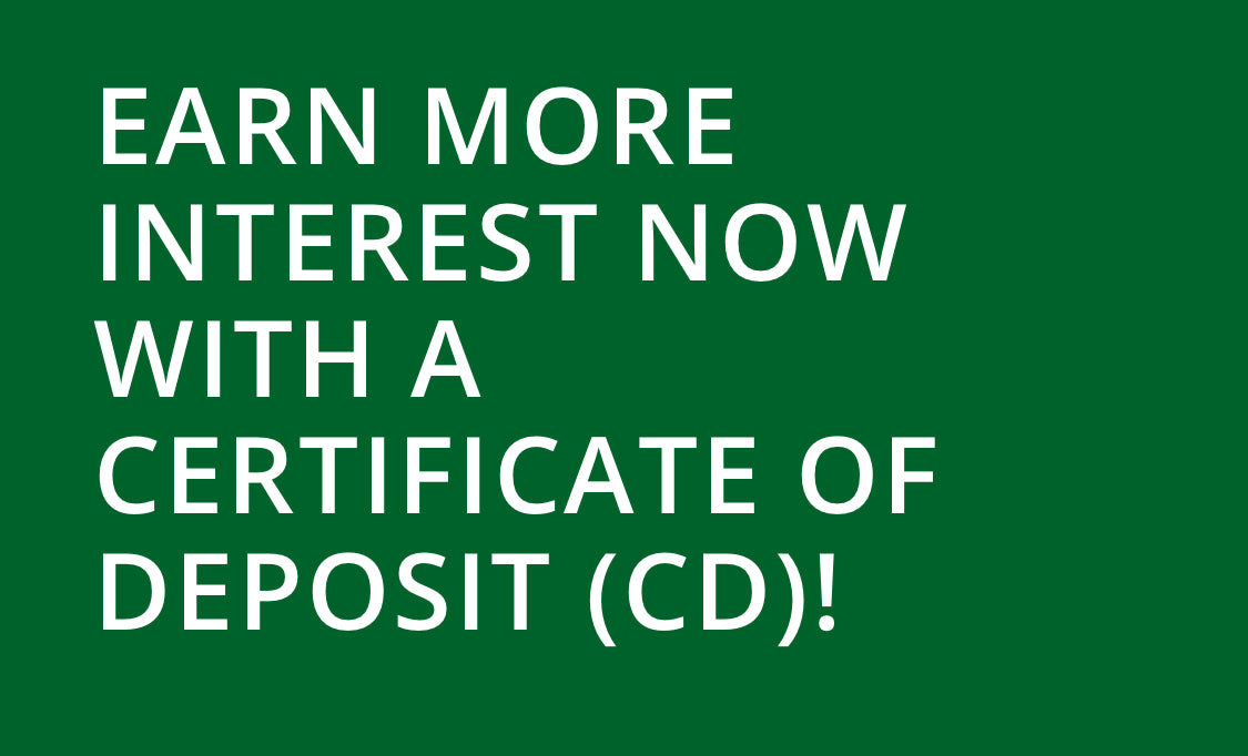 Take advantage of our Certificate of Deposit (CD) specials and watch your savings grow. With competitive interest rates and flexible terms, our CDs offer a safe and predictable way to maximize your returns. Whether you’re saving for short-term goals or planning for the future, our CD options provide security and peace of mind. Explore our latest specials and find the perfect plan to suit your financial needs.