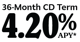 *Annual Percentage Yields current as of 08/29/2025. A penalty may be imposed for early withdrawal. Fees may reduce earnings. Rates are subject to change at any time. A minimum deposit of $1,000 is required to open a CD. CDs renew automatically to a standard rate in effect at the time of renewal unless instructed otherwise. See associate for details.
